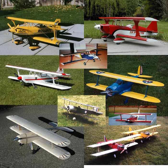 Here are some of my bipes. 1 is from a kit, 2 are from plans and the rest are my designs. Sizes range from 20" span to 61" span. .049 to .90 All 0,0,0.