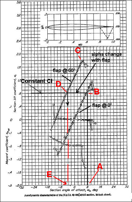 If your Alpha is at A, your Cl at B, due to your wing area, your weight, and airspeed, and you pop 60 degrees of flap,