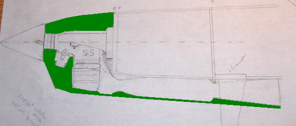 OK, the green in the image below shows just what added side area the cowl is going to add to the existing airplane. Not a lot. All that other stuff that isn't green is already there and works as side area already.