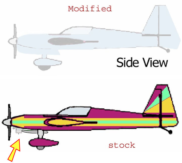 DA your right I did add the side area of the engine above the carb to that figure and the head area would have already been there. So I am adding around 13 inches to the side area, my concern was that all of that added area is well ahead of the stock COG and may be an issue. I have planed to add about 3 square inches to the rudder already, just from what I have read about the mods others have made to the plane. I was just afraid that adding so much side area forward of the COG might cause some issues in level flight.