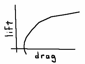 On the lift = drag question. If we measure it in a wind tunnel to get the answer (the most accurate way) for a particular airplane we find it is a curve relationship depending on the characteristics of the airplane in question but is generally shaped like the little picture I have attached. As the lift goes up the drag goes up much more. The wing itself and even the airfoild has the same kind of shape. The particulars of the shape depend on the thickness of the airfoil, camber, and most everything else that is related to the geometry of the airfoil, wing and airplane.
