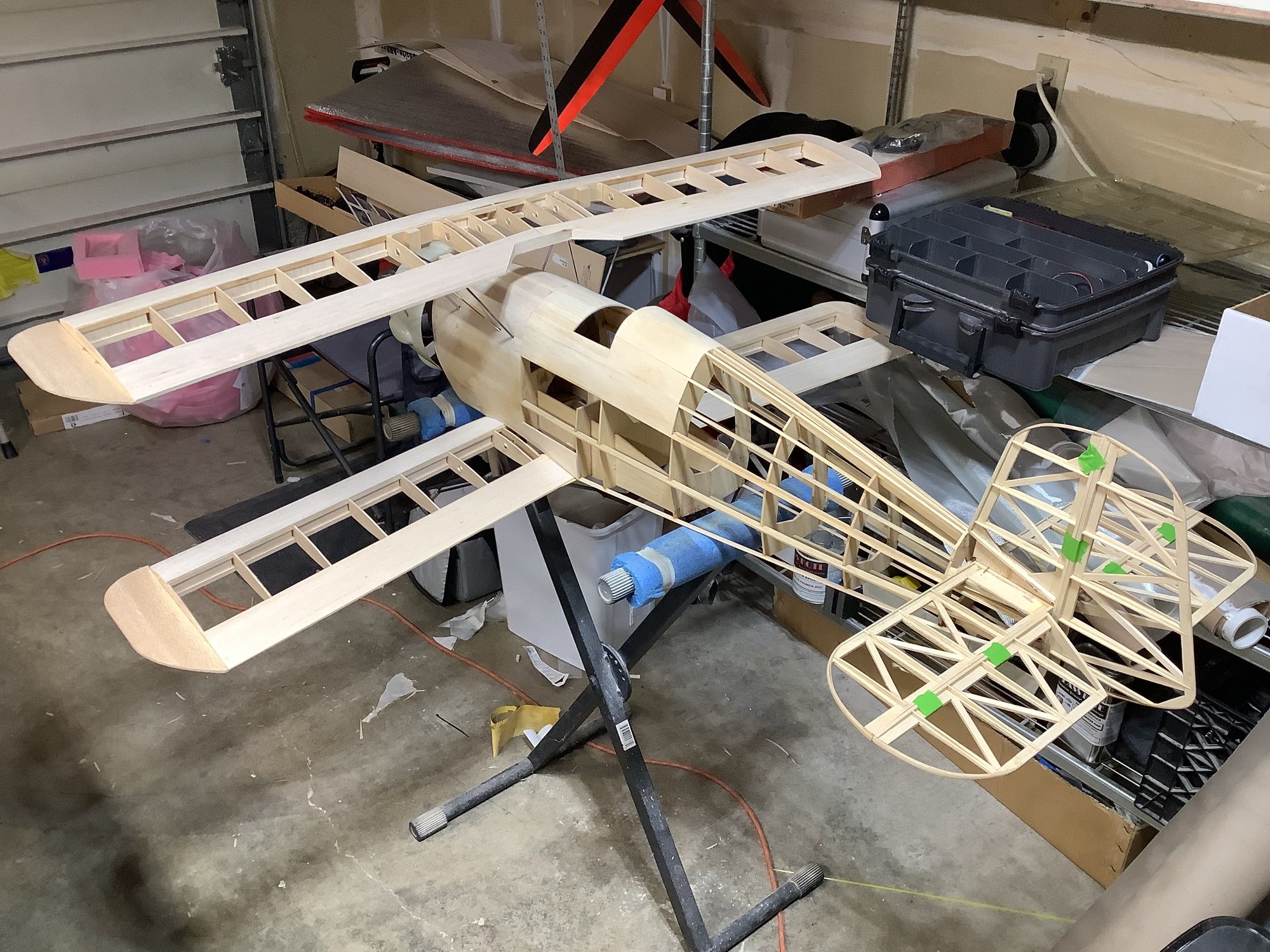 LOL, I occasionally build something out of wood. It’s an old Bucker Jungmeister that started as a kit from the English company Complete a Pac. I started the build over 15 years ago and stopped at the wings because they had a flat bottomed airfoil. A few moves later and the box with all the wing parts was nowhere to be found. While building the red Aeromaster pictured above, t occurred to me that the Aeromaster wings if extended one bay would work great. So after cutting all the parts, I now have wings. Hopefully construction will get finished over the holidays and I can move forward with covering.