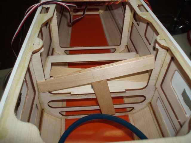 </span><p class="MsoNormal" style="text-align:justify">Firewall- The Edge 540’s firewall isn’t too bad from the factory but it flexes and since I'm putting a 26cc gasser on the airframe some “Guesses” needed to be install [balsa triangle block] around all of the firewall former and bulk heads.*****Note**** if you are moving the fuel tank over the wing spar you must install the fuel tank support bracket it is structural to the airframe. More photo’s