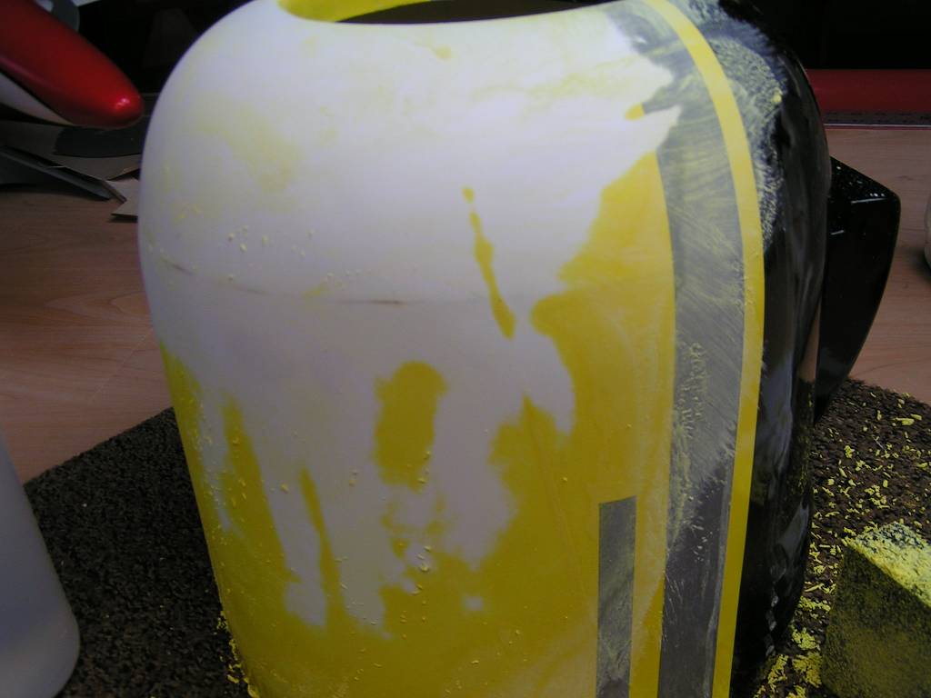 The cowl is getting that EzeKote product and glass, if it works it works. Don't really have much choice with it now!GMP is sending thepics to china to get me anew cowl and canopy, so if that comes down the road, this cowl will just be atest for my new paint scheme...