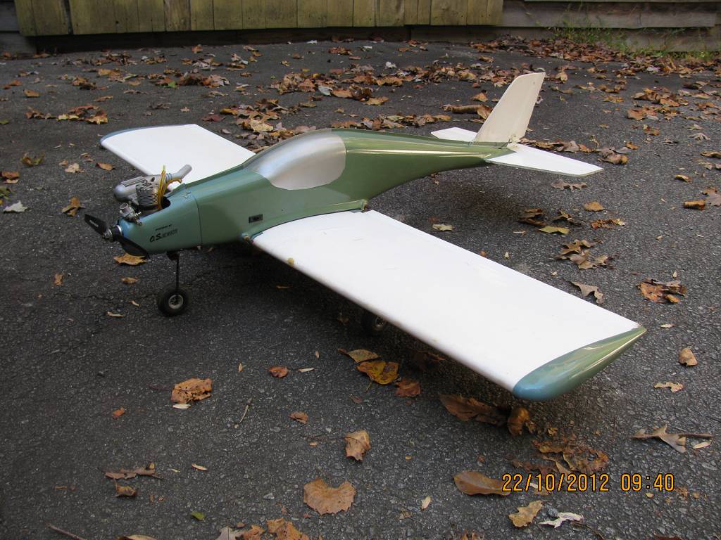 Neat plane! It looks like it has a rubber band on wing and a fiberglass or plastic fusalage? Is it a built up wing or some composit? What is the wing span and engine size?
