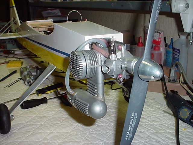 It WILL be nose heavy regardless of engine; my US40 had a .70 OS and an 1100 batt as far back as I could get it. Massage the wire pushrods until they have minimum drag; lighter music wire will have less drag and will still be strong enough. Z bends good...JIM