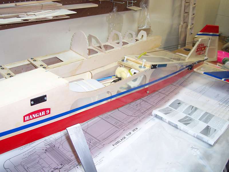 Sounds like you were busy! Let me know what Mike says. I'm thinking putting the servos in the tail would be absolutely no big deal, and might even be easier than the stock setup. Just run some extensions back and cut holes in the fuse sides for the servos. A little 16th inch ply where the screw holes are and you're done! In that way you could get a decent CG, even with the Zenoah. I'll bet with an 18-6 on the G26 this thing will hover. Do you know the price on the MVVS? For this ship I'd really like to go with the Zenoah just so I don't have to deal with an ignition batt.