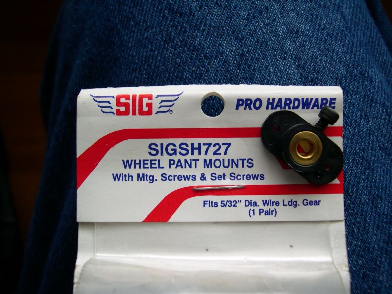 Skribnod, the Sig wheel pant pictured on their web site is the sigsh728 which is a wood mount that goes inside the wheel pant and then is bolted directed to an aluminum landing gear. The other ones listed are like the one I pictured in the earlier message and come in 4 different sizes. These slide onto the axle and are attached to the wheel pant and held in place with a set screw. Don't know why Sig doesn't show a picture of those. Hope this helps.