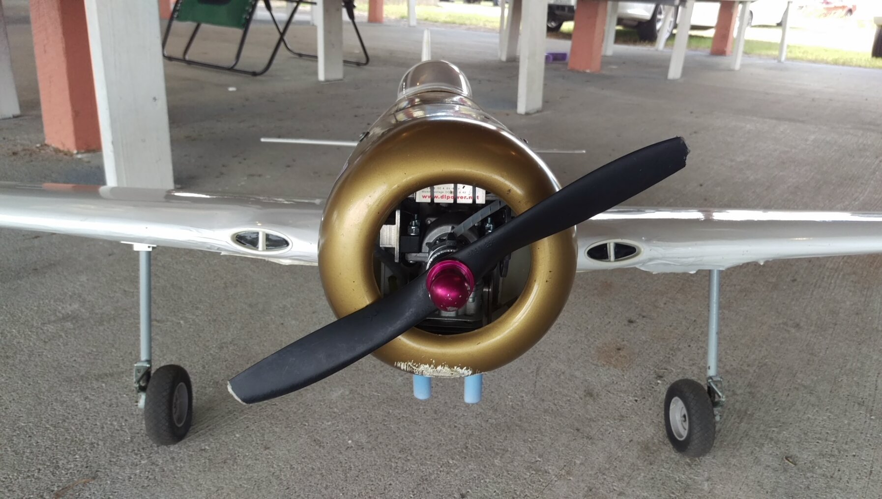 Also, I have the Saito 125a pulling mine along, basically the same class as your DLE. I did compromise and go with a 2-blade for now as nothing I had with 3 blade would fit their spinner, (Graupner has too wide a base chord to fit the slots). What prop are you spinning?