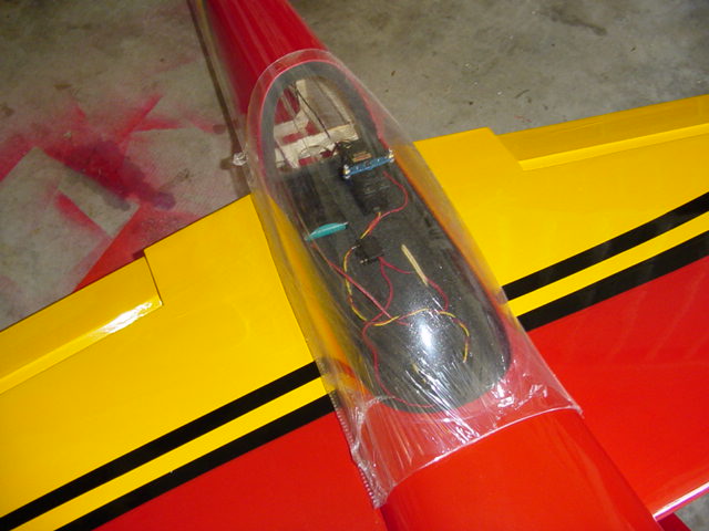 moving the battery and servo to the rear of the canopy achieve these results. NOte the rudder cables are still not installed, and the canopy has not been glue, screwed or however i will put it on..