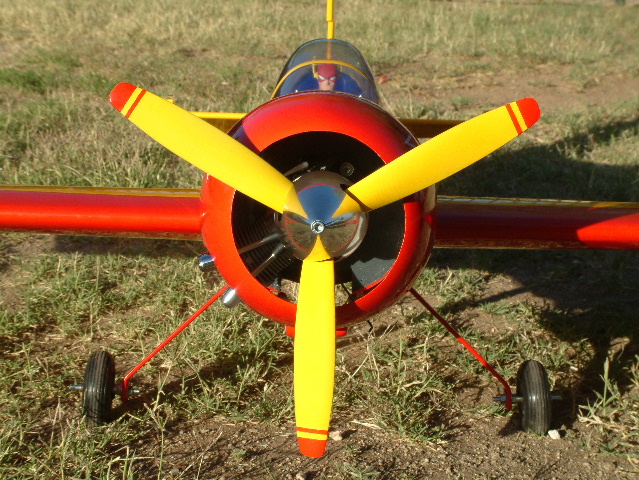 That looks super. I really like the 3 bladed prop. I have one with a Siato .72. It is a nice flying plane. Again, looks great.