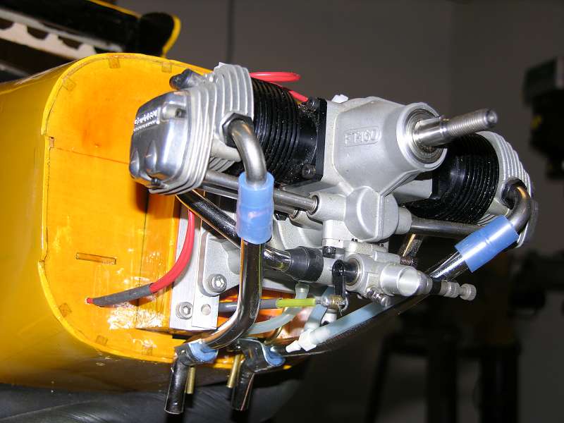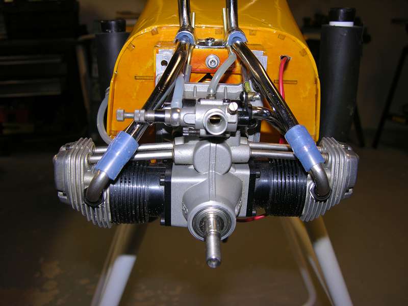 I was aware of the Keleo exhaust extensions. I didnt go for them because I was concerned about clearing the inside of the cowl. The angle of the exhaust pipe has to come close to the engine crankcase to stay inside of the cowl, especially for the left cylinder which is offset closer to the prop by a small amount. They look like they have the right shape, but the actual dimensions are key. Also, where they come out of the bottom has to be right. The only way to find out is to buy one, kind of expensive experiment. I got the blue silicon tubes from a hobby shop, they are used to attach tuned pipes to mufflers. They come in various sizes. also had a little trouble getting the full throw on the aerilons, I compromised between making a grotesque gap or less throw. I got about 1 1/4 ". My Sig 1/4 scale cub has been flying well for years with less throw than that. If you mix in rudder, the result is even better.