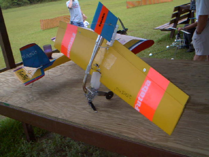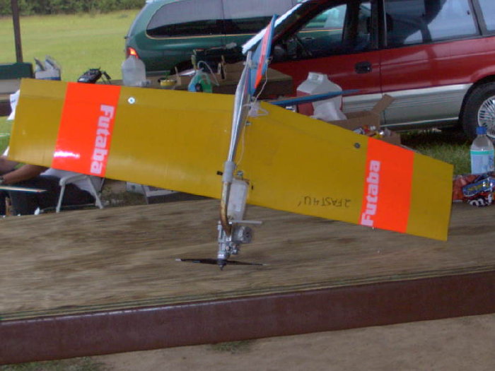Here it is!The wing is made of coroplast and the fuse is 1\2X1\2 square aluminum tubing.This thing is very fast and virtually indestructable,and flies awesome.It is made by The Airplane Factory,designers of the Kombat 40 plane.Their web site is www.kombat40.com