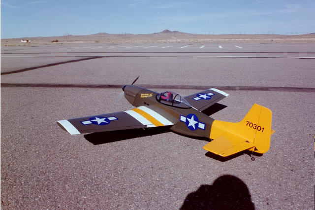 Wouldn't it be easier to just get a Great Planes, or World Models P-51 covered in basic silver military style....and just change the trims to match-up with "Pops" squadren markings ?