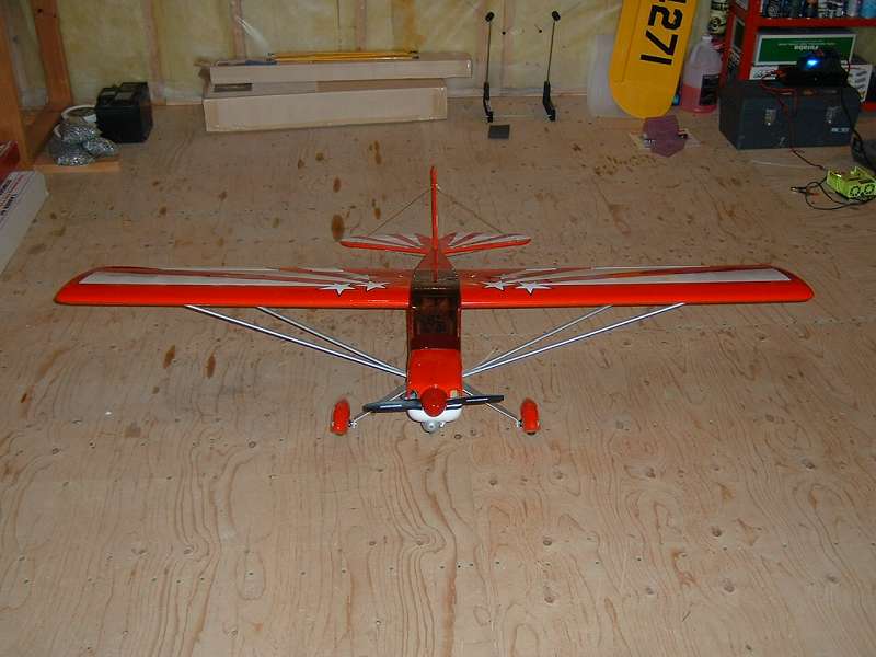 Ok, the plane is basically finished now. I put the stripes on the bottom, got my 9C, aileron differential set up, etc... just waiting for good weather.[