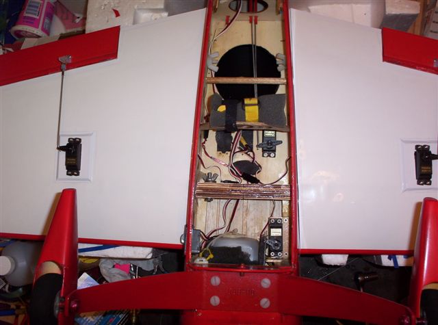 I will second on the rudder servo arm.. You would get more mechanical advantage by moving it around 180. So how big of a hole did you drill right behind the firewall? I take it then you covered the hole with covering? After seeing that much weight was reduced i may just go ahead and do that. Then again i kinda dont want to take the time and move the servo in the rear