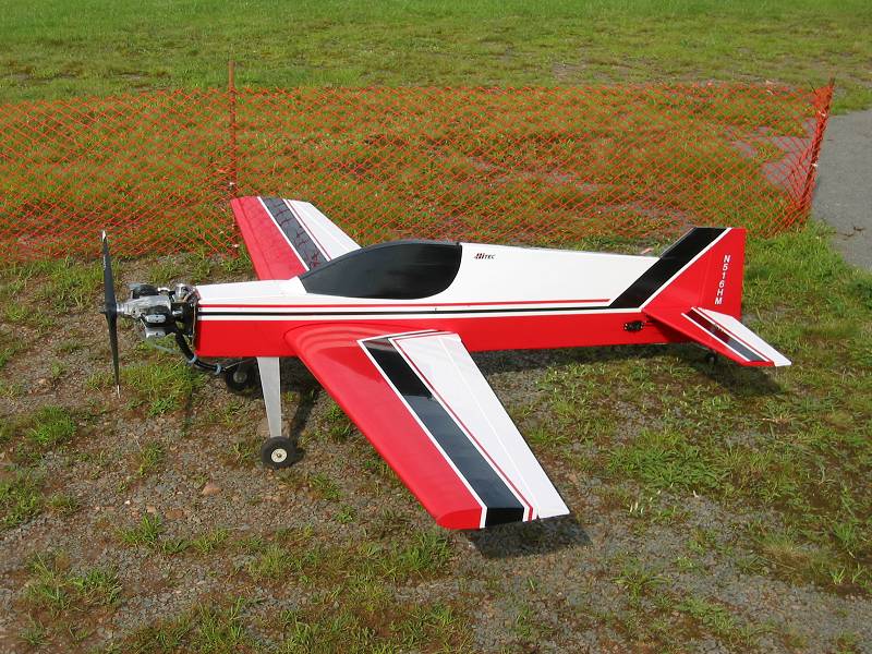 I put an 18x6 on it. Still waiting for the spinner. I ordered the wrong size the first time. I put the batter pack just behind the cg to offset the weight of the ignition module. Otherwise the engine is the same weight as the G-2300. I ended up butchering the intake side of the cowl a little but it's functional. I've been using the Great Planes gas engine kill switch but they have to be modified for use with this engine. The switchs, ignition, and battery have to be wired in series. I'm going to post something about this in the BCMS sig later.
