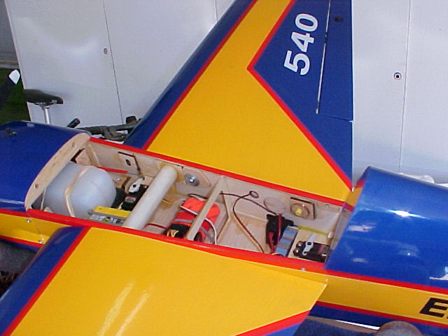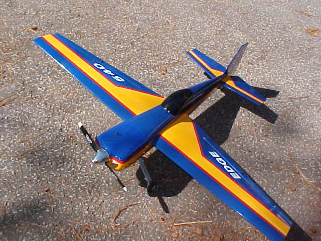 The plane is now ready to fly, with an all-up weight of 7.5 lbs. (minus wheelpants) If the 691sq. in. wing area spec in the manual is correct, then this plane has right at a 25oz/sq. Ft Wing loading that should put it in the same ballpark as the Skyshark and Seagull Edges. It's not a 3D plane, but should fly sport aerobatics quite well, which is what I wanted it for anyway.