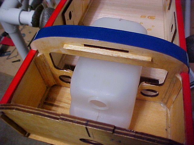 You can compare the picure I posted a few posts back of the F1 former and the pics below to see how much sanding I needed to get the DuBro 14oz tank to fit - it wasn't much hassle at all, and should give some longer runtimes for little weight gain.