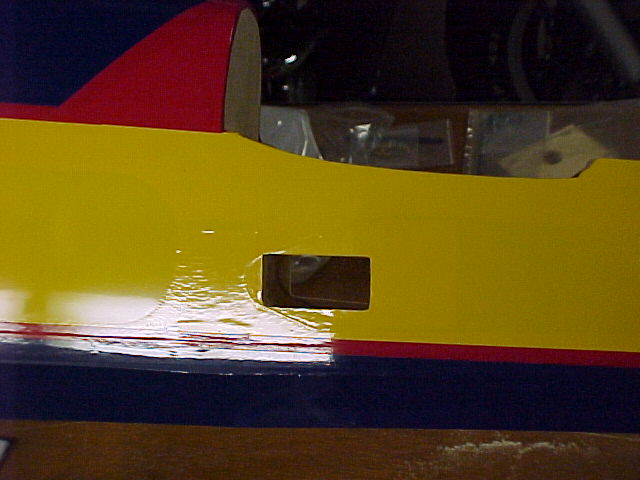 The first one, I made a filler plate, that gives a solid surface for things once you cut a hole....ALSO........the plate was cut and fit in BEFORE the hole was cut. I just made the plate fit nicely from within, and when satisified, wicked some CA in there to glue the plate in. You want to be careful to not get to much though. Go slowly with the CA, it will save your exterior. I just knew my ball-park for the hole, and made the plate to accomodate within reason.........