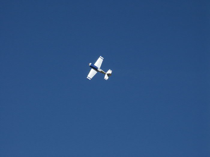 flight 3- now it was time for freestyle. takeoff accelerate vertical and transition into a high alpha rolling circle. i also did some waterfalls and those were as good as the h9 1/3 cap232 and kept right on track and rotated around the wingtip fairly quickly and i also did some knife edge which was great needing only a little coulpling but nothing too severe. this airplane knife edge loops very well and hovers very well i also performed alot of flatspins which the airplane came out of very easily.