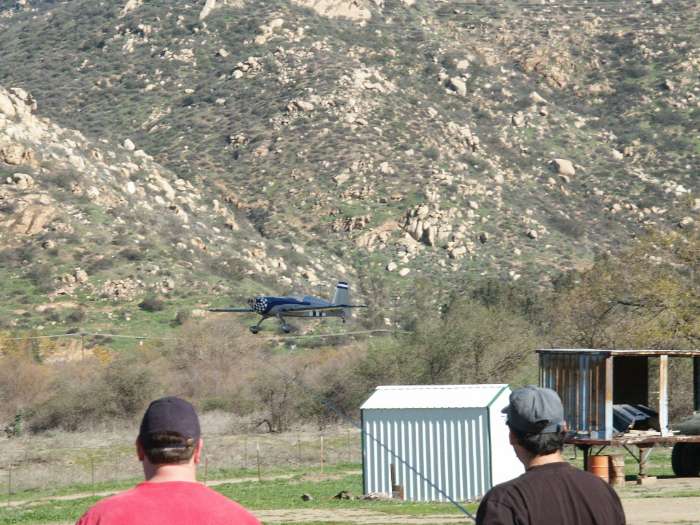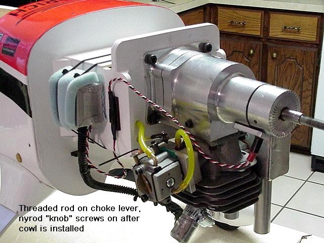 I've taken some static thrust measurements, and I am getting at least 23 lbs of thrust, so yes... the 17 lbs (wet) plane will accelerate nicely, straight up out of a hover. For the prop/rpm crowd, the relatively new FPE is turning a Mezjlik 21/10 at 6900 rpm while running comfortably rich. (60 deg F, 1250 ft elevation).