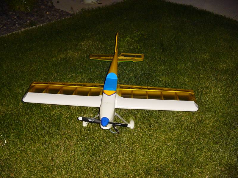 I yet have to get the prop and spinner for it. It seems slightly tail heavy with an OS surpass 70 II in the nose installed as far ahead as possible. It will be rainy tomorrow [:@] [ernesto is coming our way] so I might be able to tell you by tomorrow night and hope to flight test in on Sunday if the wheater allows