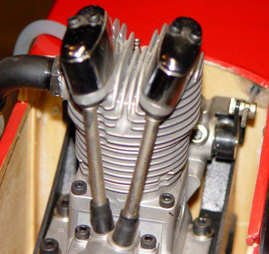 Here is how I set my Saito 100 up. I switched the pushrod to the opposite side and set the arm to point up instead of down and used a braided wire as a pushrod tinned on both ends for rigidity.