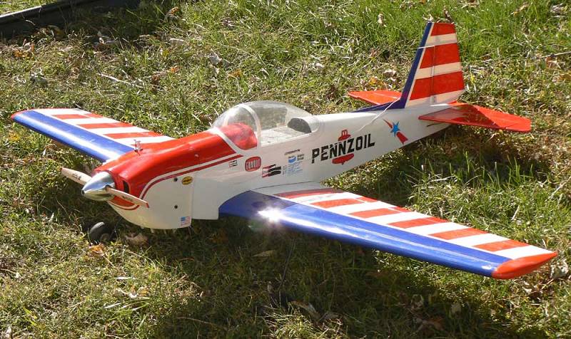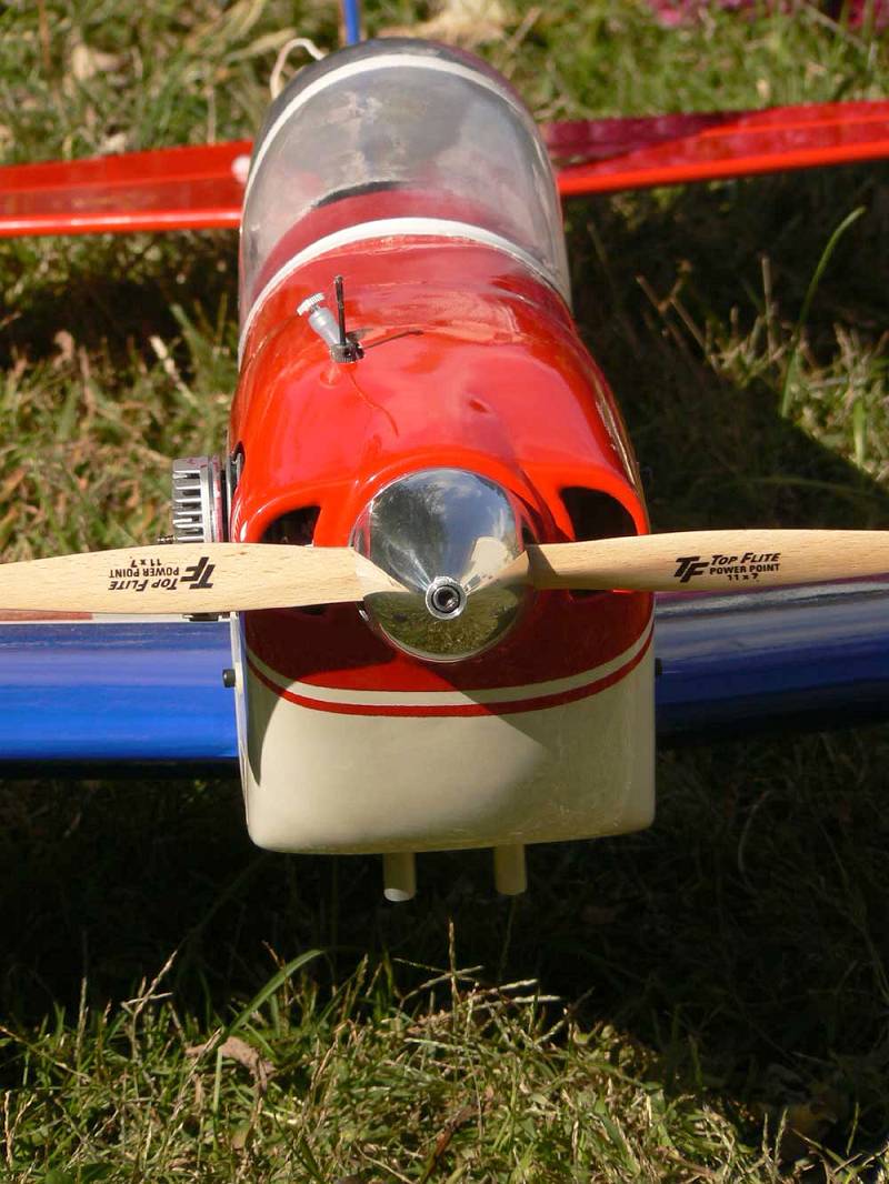 Mine is the 63" span version and if your's is like mine, there was excessive slop in the torque rod channel. I could move each aileron about 3/16" without affecting the servo arm. Knowing this would give flutter, I cut off the torque rod threaded ends and installed 2 aileron servos. Looks like your wheels are far enough ahead of the LE. Mine were further back and until I bent them forward, landings and takeoffs usually had nose-overs. With an Enya 61, it has more than enough power. You should really enjoy it and it will last longer if you reflex both ailerons UP about 3/16" to lower tip stall. I don't understand why there was over 10 or 15 years for the arfs to come out as opposed to kits only.