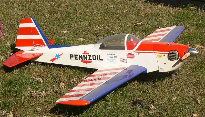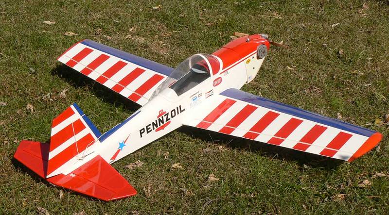 I got this on eBay 2 years ago, I bought one with a round glass fuse, this came. I finally put it together, it calls for a 40~46, so a OS 60 sounded good to me![:-] I have a Futaba PCM 5 channel in it, it called for aileron servos out in the wing and a central flap servo. I thought the flaps was a waste of time so I joined the flaps to the ailerons, and use one central servo to drive both ailerons.
