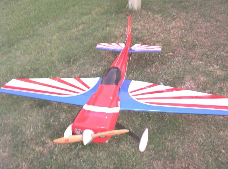 Plane upside down or rightside up. (Doesn't matter as much with a mid-wing acrobat like an Edge540 or in this case,,, SS120. I balance my mid-winged planes rightside up.