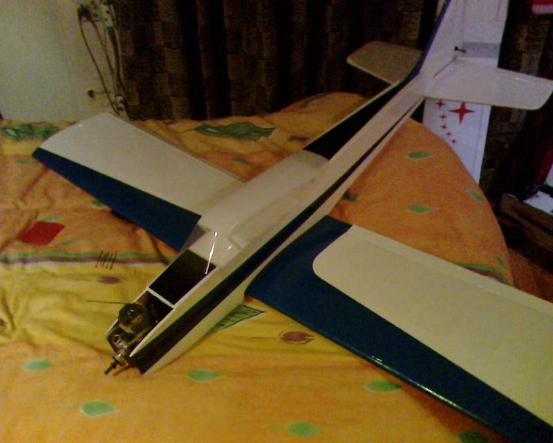 I was assuming a long take off roll, so I had my flying buddy hold the tail while I cranked up the Ax to full throttle .With an 11x6 it revd up to approx 11600 rpms , have ran only two tanks through it .I guess it will increase in future flights as the engine loosens up. He let go off the tail and after a short run and a bit of up elevator it was airborne .I was a bit shaky at first because I was accustomed to the lumbering takeoffs of my Superstar 40 trainer , having flown that for over an year , the super sports is a totally new experience .46 Ax is an ideal match for this model , the speed and the sound put a smile on my face ,it was a bit windy 13mph but that didn’t seem to bother at all, the cg seemed right on the mark without any tendency to dive or climb on its own , tried a few imelmans, loops rolls figure 8s, all with good authority .After about 10 minutes it was time to land because I was flying at full throttle all this time , I pulled back to half throttle and circled the field to bleed the airspeed. On the final I pulled the stick all the way back but she showed little signs of slowing down as the throttle servo wasn’t setup properly for slow idle, pulling back the trim lever didn’t help much either. All it did was slow down the engine to fast idle .That caused me to panic because now the landing strip seemed too small for this hot bird ,and in the direction where I was landing there was tall grass right after the field,couldnt abort the approach for the fear of a dead stick close to the ground , tried to flare her several times to bleed off the excessive airspeed but then I didn’t want to stall her, this resulted in me flying over almost all the strip, the touchdown was quite hot ,in the last 10 ft or so of the strip As soon as she touched down she just hugged the ground and the grass acted like a speed barrier , there was no damage to the plane except a tiny tear in the covering near the right wingtip a little cello tape was all that was required .After the flight all I could do was to feel proud of the fact that i had successfully flown my first Lowwing model ,I know that would be a walk in the park for many of you guys .I am glad I chose this kit over the scale super chipmunk 46 .