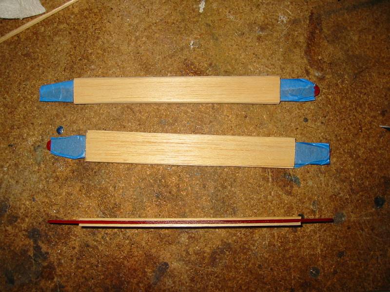 After the modification to the carbines, I sanded, primed, and repainted them red. The main wing struts were stained and coated with thinned expoy.