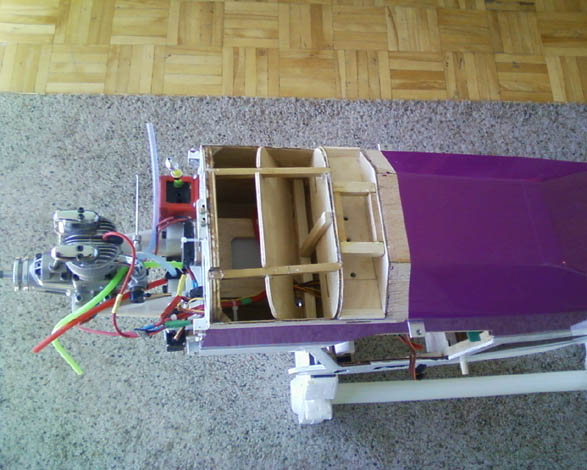 I noticed that there is no any fuel proof inside the tank compartment. Actually I did some Lastrikote spray, but couldn’t reach all the structures. Vietnamese plywood is the best to absorb oil from the fuel. It almost totally destroyed the bottom section of the fuselage. Tried everything – kitty litter, corn starch, K2r, heat and absorb -no way. It was seating there like for good. The frame needed some balsa and plywood to be changed.