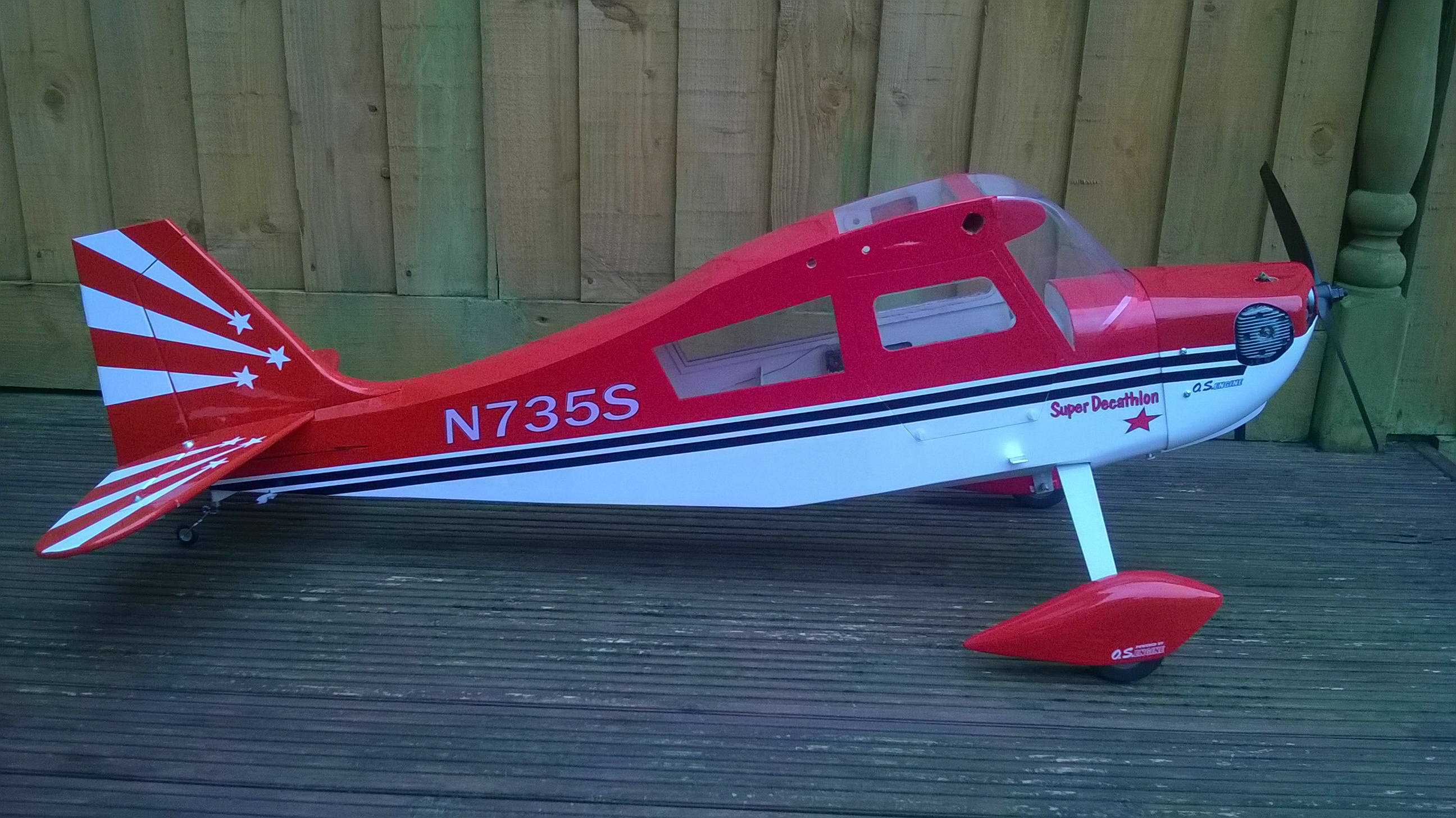 I'm late to this thread but find it quite interesting and informative as I just aquired the 75-91 size I purchased at a swap meet. It came with a Saito FA 115, Futaba 3010 servos X 4 (2 for elevator and 2 for ailerons), a Hitec 605 BB for the rudder and a JR 537 for throttle. It has been completely recovered and appears to be well looked after. Are any of this threads previous contributers still flying their Decathlons? Hopefully they all haven't bit the dust ( planes, not pilots).