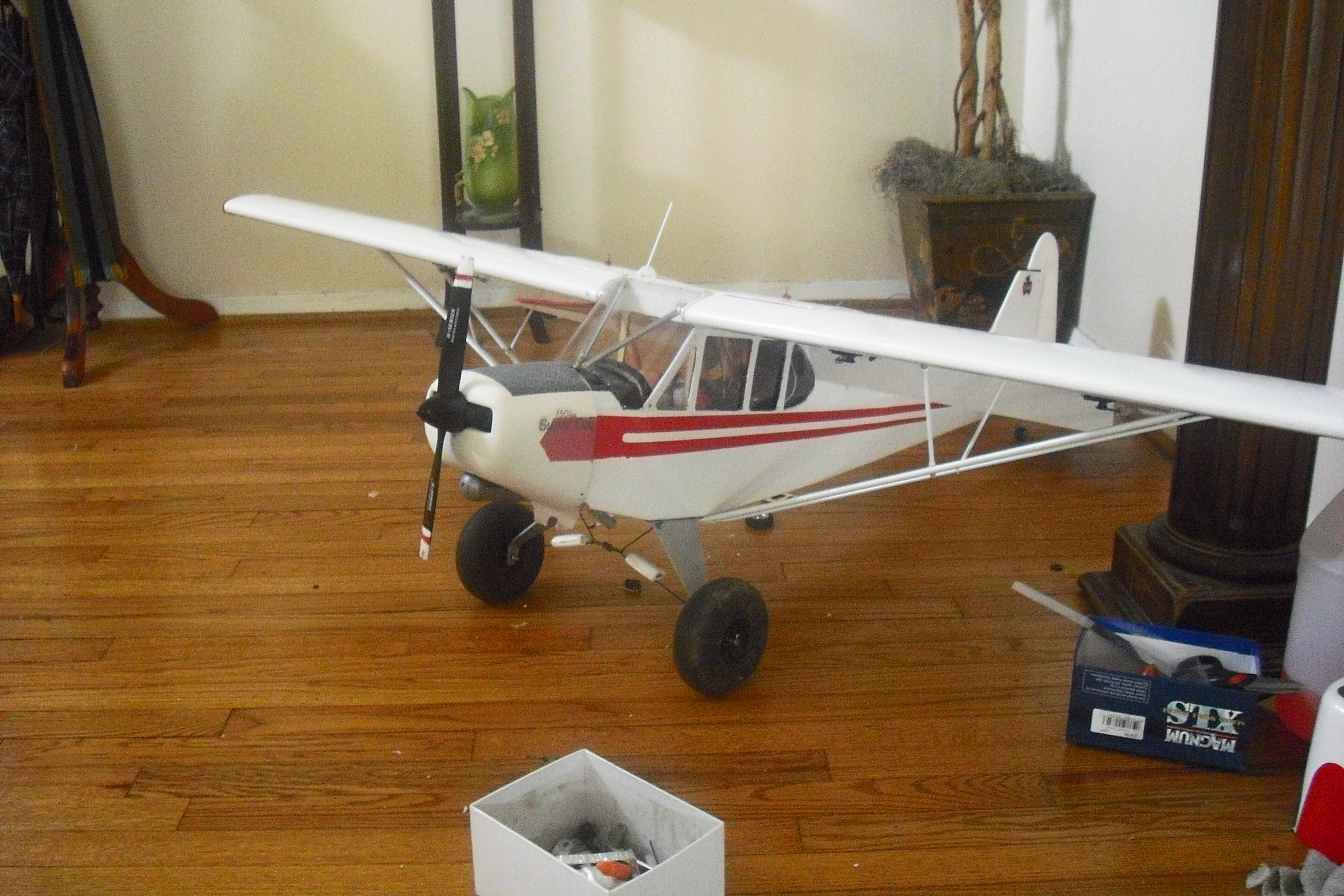 ,i love the way she flys with the big prop ,it acts like a climb prop on full scale pa-18 ,will post pic when my new cowl comes in
