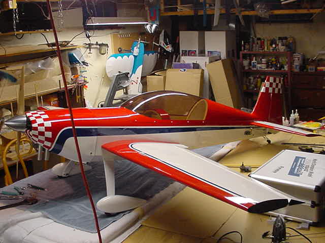 Now for the clincher! I have fitted a Zenoah G-45 Rock to my airplane, per Dave Patricks OK! Yes it is on the heavy side, but it sure does look sweet! Its the only engine I had, and have been wanting to use it for something! (other than a paper weight!) According to Dave Patrick models, CA hinges, and the Zenoah G-45 will be OK. (I put 5 CA hinges in ea. Elevator half, 8 CA hinges in each aileron, and 5 CA hinges in the rudder) So, Im going with it! I would put the robart hingepoints in, but you know these arfs, not enough trailing edge for proper glueing without modifying. By now, I have done all the "mods" Im going to do. Im using Hitec 945s on the elevators, Hitec 5645 digitals on the ailerons and rudder. Good luck with yours and wish me luck with mine! (Im gonna need it! ha!ha!) By the way, dont try to change my mind on the G-45, as this is what I have, and this is whats gonna fly her! Ive been hearing you need extra weight up front to balance anyway! I should not need any extra!