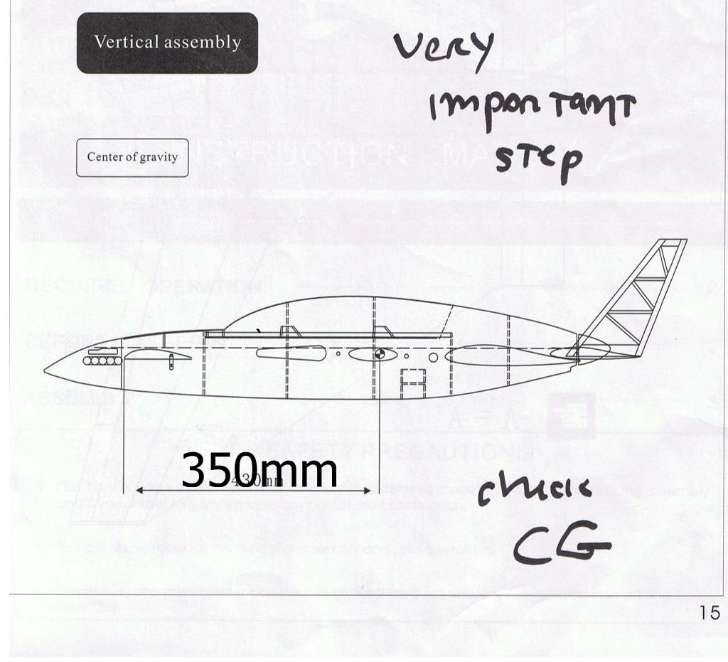 My book says 430 mm from the leading edge of the canard wing. I would tend to be forward of that point rather than rearward. I found it fairly easy to fly as long as the speed was kept up. When landing give it full DOWN elevator as soon as the mains are planted to keep the nose on the runway or it will try to fly again and stall just above the ground. GOOD LUCK