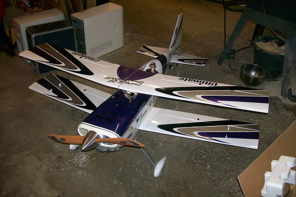 My brother just finished his Ultimate and here are some pictures. DL 50 under the hood, swinging a Vess 23" (A) prop. He glassed and painted the cabane mounts, added a GraphTec tail gear, upgraded the pilot bust, and used flat HD nylon hinges instead of the supplied ones, among other things. Can't wait for the weather to break here in Ohio.