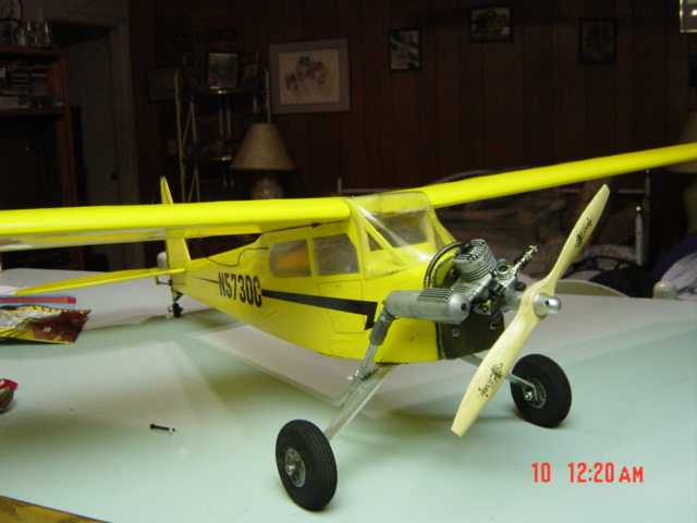 My latest is a vmar cub 54" either 400 electric geared or 1/2 A glow I sliced off the really