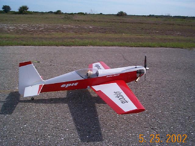 Well I took my first flight last night. It was kind of late in the day but I managed to get one flight in. It was not without incident as the engine was giving me trouble. It had seized up before I was able to take off. A couple of guys from my club helped me get it free and running again so I got it fired up and took off. It did not take long before it jumped off the ground and into the air. It only needed about three clicks right aileron trim to level her out. I am not used to flying something so responsive so it took a few maneuvers to learn to go real easy on the elevator. I have them at about 15 deg on low rates which is plenty for now. I was able to make about 4 or 5 passes before the engine quit! Not what I really wanted for my first flight. I ran out of field and speed so it went into the tall grass/weeds, it was going pretty slow by the time it hit the tall stuff. It flipped over on its back and the gear was bent a little. Other than the gear there was'nt a scratch! Now I've just got to run in my engine a little before I go out again. I think I may add a little castor to my fuel to get better lubrication. At any rate the plane flew great and it held up very well in the rough landing.