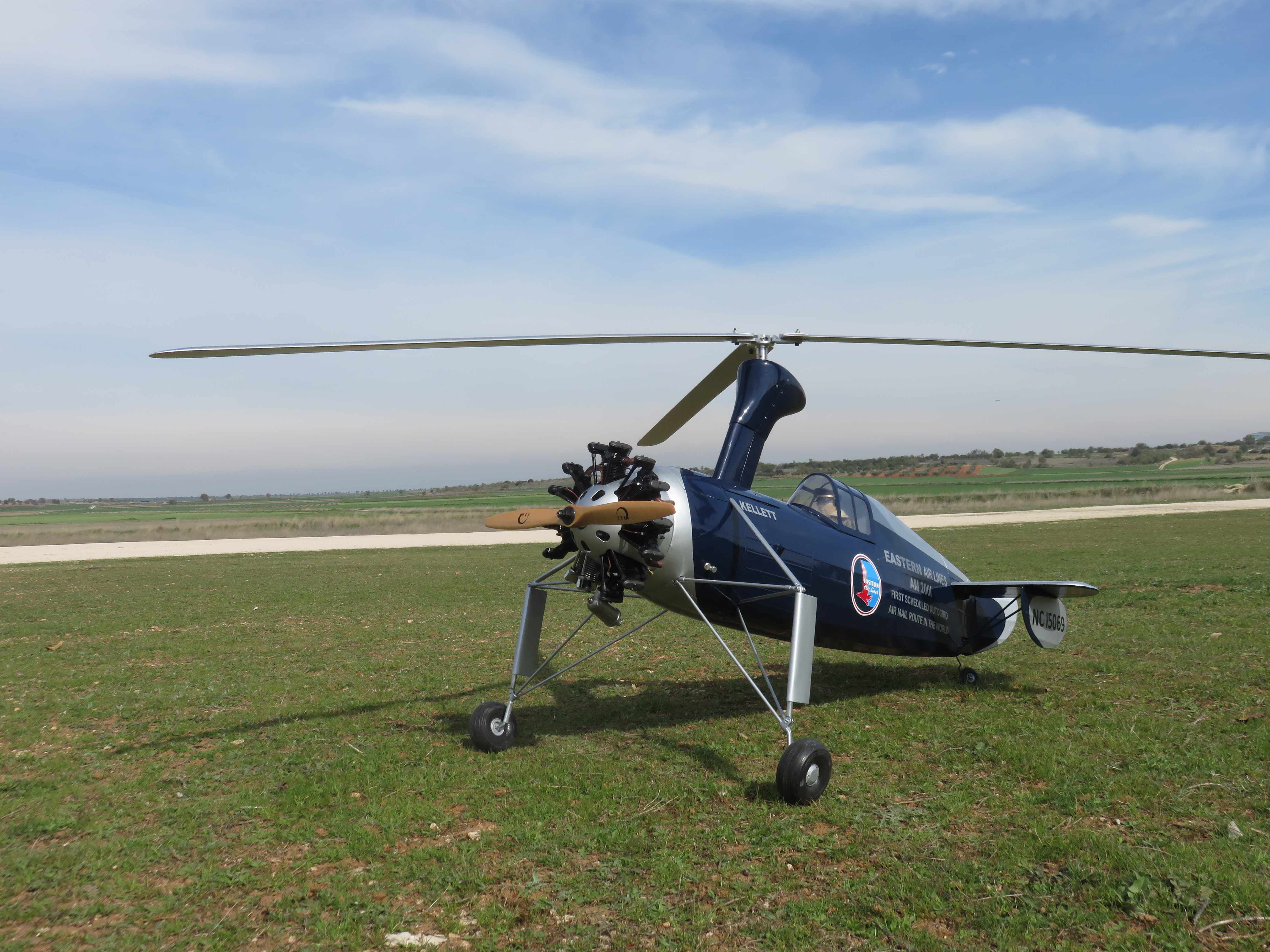 My Kellett Air Mail flew last week . After a few seconds , I lost the position in flight due to have a problem in the rotor head . I lost an screw so the model landed sharply . Fortunately only a few parts were damaged ,so I will fly again in a few days . It is a beautiful model in flight .