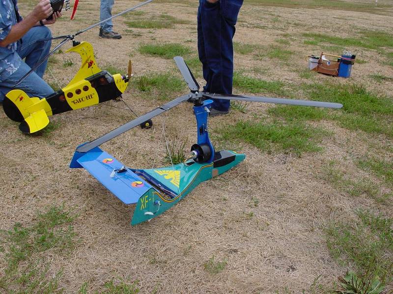 We were both at the Martinsville Fly-in in 2002 when Steve Tillsion flew the XF-1 with the ducted fan for propulsion. It was a novel autogyro that flew quite good. I am surprised Steve of AofA has not published some plans or sold some kits of his design after all these years. It is too bad he's making gyros out of soda bottles now. He has a lot of money invested in our RC autogyro hobby and should be doing something more constructive like he did at one time in the past. It would be nice if he would participate in our yearly fly-in at least as a flier. I don't feel it is necessary for him to donate kits as he did at one time but it would be nice if he would at least show up and fly with us as a friend.
