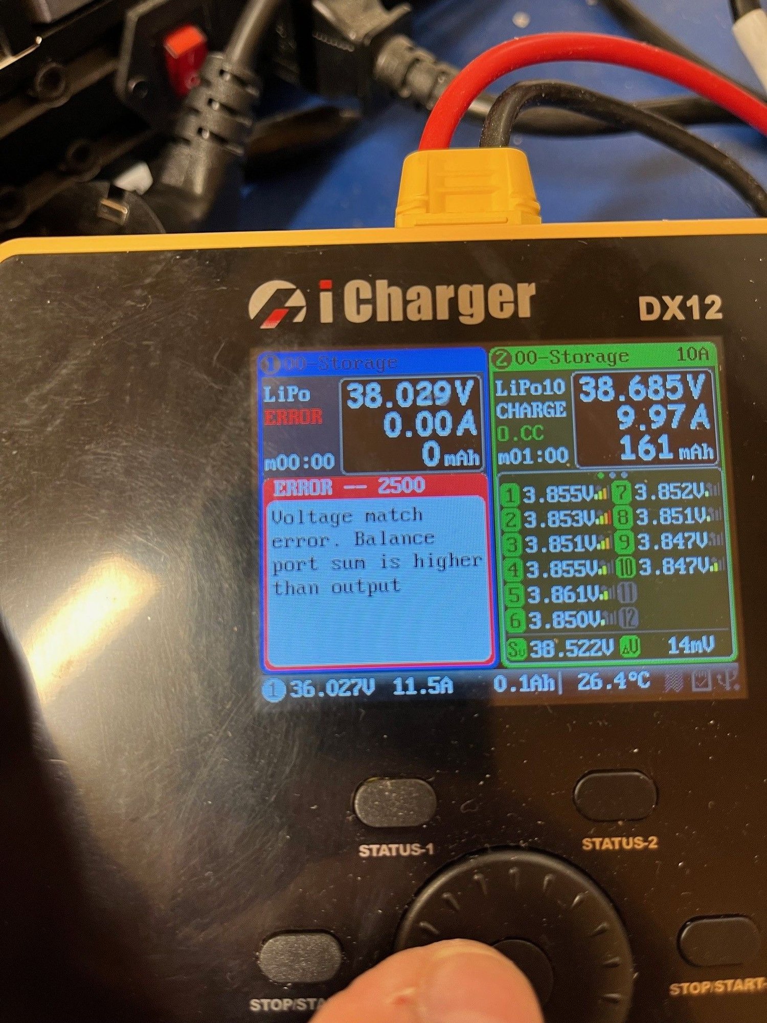 I have run Icharger x12 for some years but 1 off them decided to die , so I was looking for some replacment and found the new DX12 and ordred 2 off them ...get the same error message on both...but inly on the "left" channel