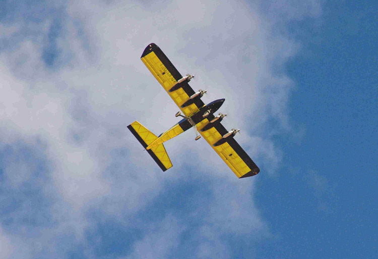 I think your trim scheme looks sharp, but as I said earlier you'll have an easier to see plane if you'll go mostly yellow with black stripes and do only the bottom black if you want to. A black plane turns to a shadow pretty quickly, while yellow is the easiest color there is to see against a blue or overcast sky (that is and see enough airframe detail to keep orientation). You can lay the black covering right over the yellow, but as mentioned before you'll have to put the yellow stripes down on the black area and then overlap the black over them to make it look right.