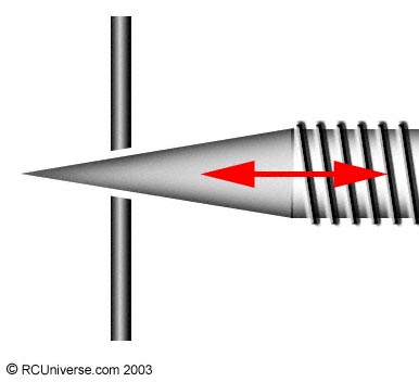 Ok, so you've backed off from peak, so you're ready to go? Well, here's a couple of tests you should do to double check. Pick up the airplane and hold it vertically. The engine is now pulling fuel uphill, and will lean out a little. You should hear a slight RPM increase. If you hear a decrease, you are too lean, so back off the needle a tad and repeat. If you don't hear a change at all, I'd still call it slightly lean, so back off a click or two. Another test is to give the fuel line a hard, but short pinch. Again, this breifly leans the engine. You should hear a slight RPM increase. If the engine slows or staggers, back it off a tad.