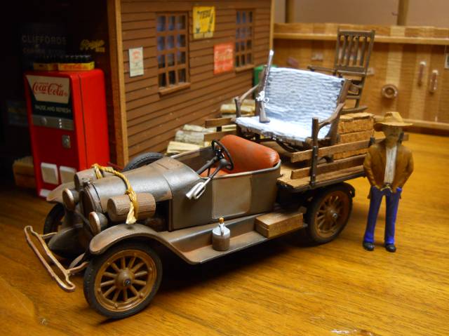 I've built models and dioramas for years and I think that's why I'm so detailed about anything I build. Here's a 1/25 model I built recently. Its mostly scratch built except the tub and wheels. Grannies rocking chair on the back of the truck is only 1 1/2 inches tall and it took almost a day to scratch build that rocker.