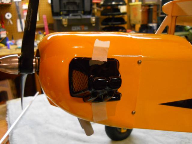 John, I'm going to open up some air vents on the front of the cowl as Larry suggested before. I'm waiting on another OS 40 LA to arrive before I proceed with the vents. I'm into scale and detail big time on everything I do so with that said I plan on somehow taking the head from the incoming 40 and mounting it on the other side of the cowl to make a true looking twin cylinder.
