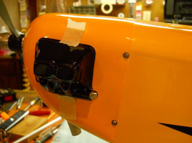 I got a little done on the cub today. Since scale is out the window I'm just going more for function and try to keep it as clean as possible. I decided on how I would get air flow to the engine. I used the fake engine and added a vent to the front of it as well as an exhaust tube to make it look a little better. After I get this installed I'm going to anchor the plane and get some numbers on the engine heat before I cut anymore. I think the exhaust tunnel will be enough outlet. If not the laser thermometer will tell me.