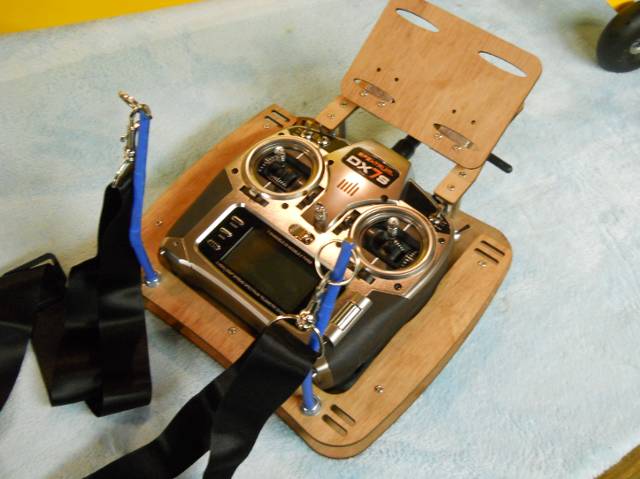 I threw together a sweet little custom transmitter tray today while glue was drying on the cowl vent. It balances perfect with the DX7.